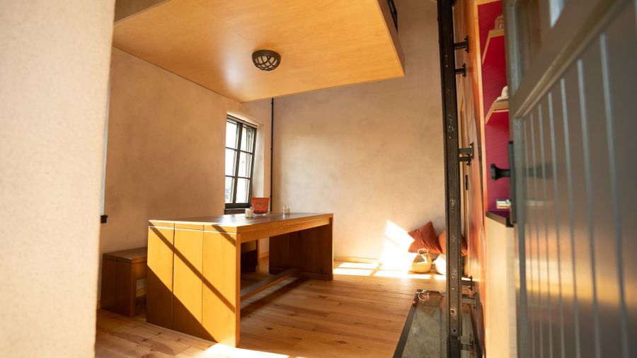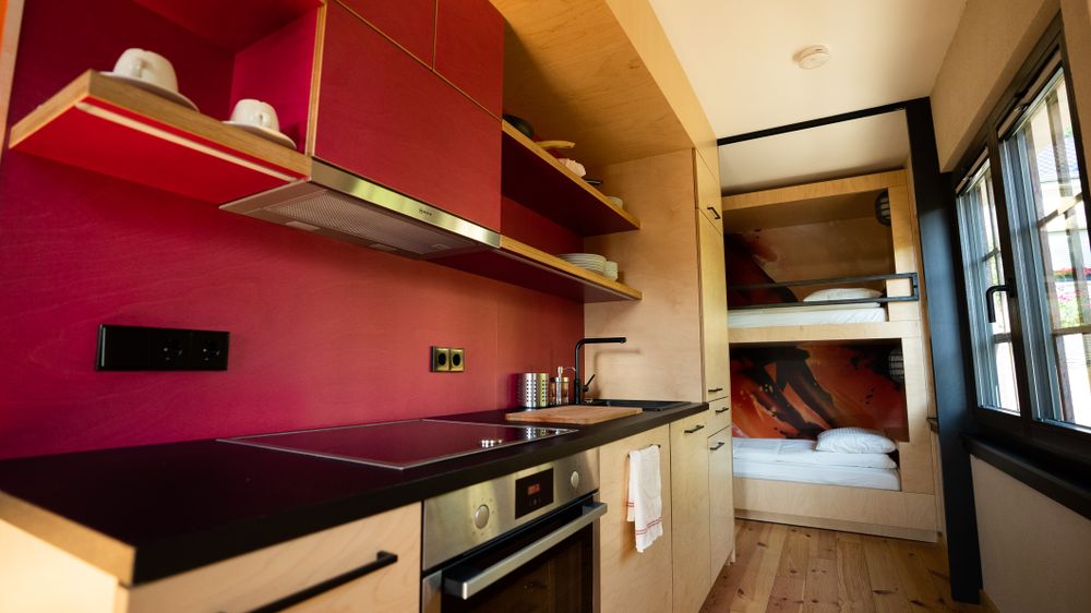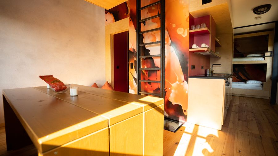 Die Arbeiten zur Verwandlung dieses alten Verwaltungsgebäudes hatten dabei die ganz klare Vision, die bestehende, historische Grundform des Gebäudes zu erhalten und zu respektieren. Zuständig hierfür war das Architektenbüro Tetra Kayser Associés. So bleibt die Aussenfassade dieselbe, und auch das Innenleben soll weiterhin die enge Verbindung zu der industriellen Vergangenheit verdeutlichen. Mit "Street Art" und Fresken wird dieses "Kabaischen" industriekulturell bespielt. Den ersten Stock mit den Schlafmöglichkeiten erreicht man über eine Leiter, die Schlafmöglichkeiten werden durch drei Separaträume aufgeteilt.