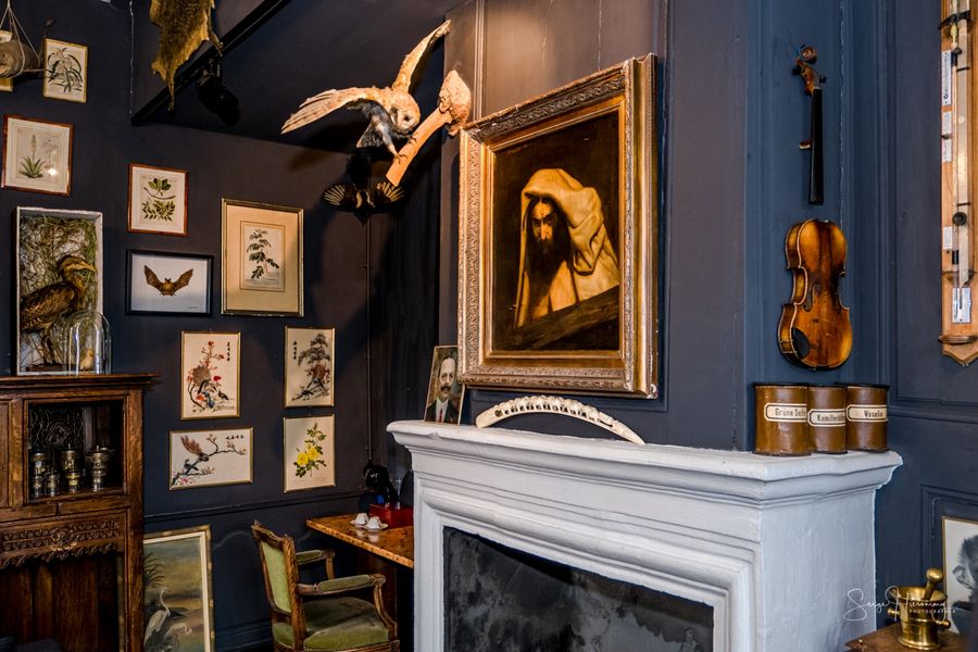 Diese Suite, die Sherlock Holmes gewidmet ist, versetzt Sie in das Delirium des Genies ... Der Loungebereich ähnelt stark einem Kuriositätenkabinett aus der zweiten Hälfte des 19. Jahrhunderts.