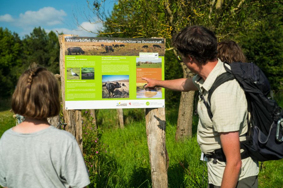 Auf diesem Teilstück wandern Sie durch das einzigartige Wasser- und Vogelschutzgebiet "Dumontshaff", das als Natura 2000-Naturschutzgebiet mehreren Spezies ein Habitat bietet. Hier lässt sich die Vielfalt des Alzette-Tals und -Flussverlaufes genauer betrachten, und mit etwas Glück können Sie Storche oder Kiebitze beim Brüten beobachten. Vielleicht erhaschen Sie sogar einen Blick auf die hier grasenden Wasserbüffel - sofern diese sich nicht vor neugierigen Blicken verstecken. Das gesamte Feuchtgebiet, durch das Sie wandern, ist mit einem Steg versehen, um die Natur zu schützen und Ihnen dennoch Zugang zu erlauben.