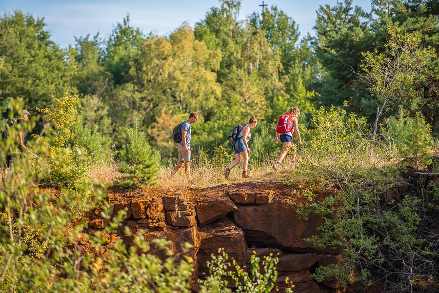 Unterwegs wird Ihnen nicht nur viel Grün geboten, sondern Sie werden ebenfalls das ehemalige Tagebaugebiet „Brommeschbierg“, welches heute im Naturschutzgebiet „Léiffrächen“ liegt, durchqueren. Hier erkennt man die roten Abbauterrassen und wie sich die Natur dieses einst karge Gebiet zurückerobert.