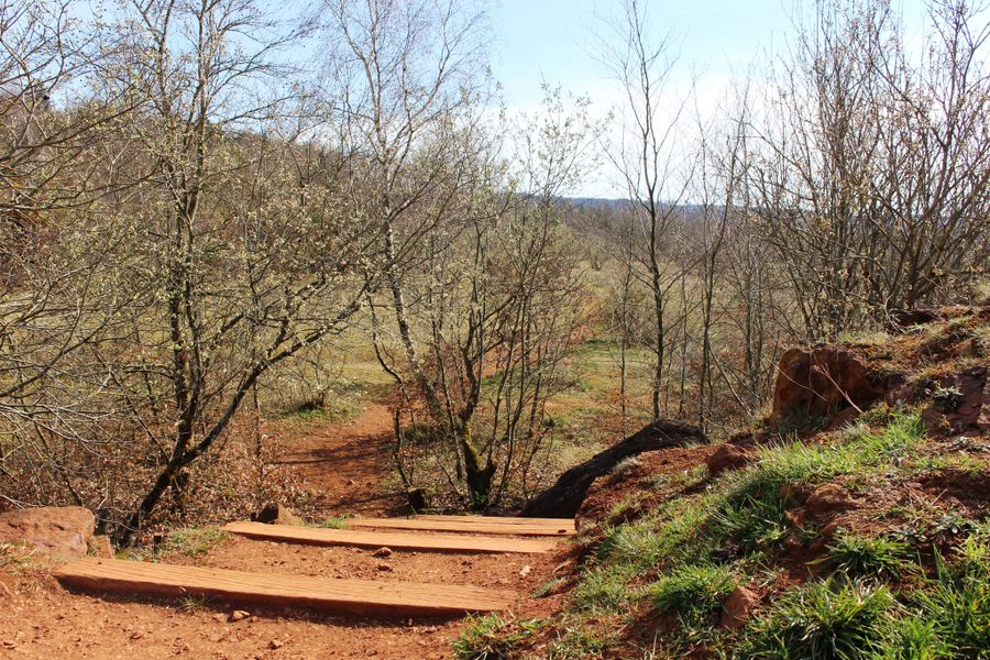 Größtenteils führt der Weg durch die schattigen Wälder von Schifflange. Er hat mehrere Highlights für Sie parat: so zum Beispiel die sieben Nixen an der Quelle des Marxeweier, einen ehemaligen Grubeneingang und eine grandiose Aussicht vom Lalléngerbierg über die rote Erde hinweg zum Stadtviertel Belval mit seinen beiden Hochöfen.