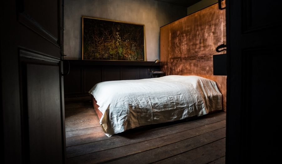 The "Sherlock" room: discover a cabinet of curiosities, a bathroom in the castle tower and an atypical copper island bed.