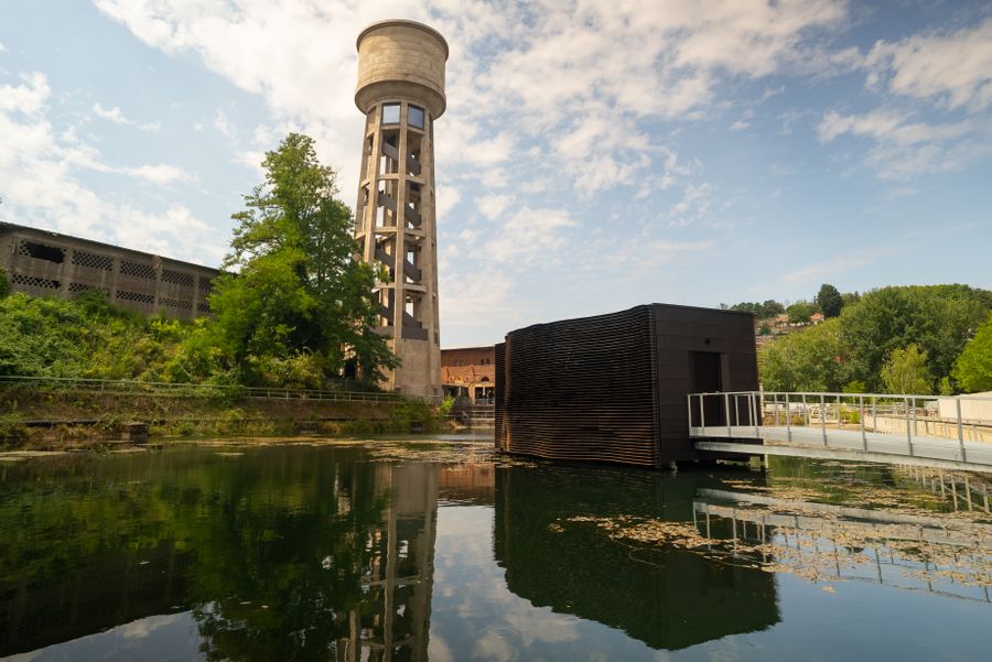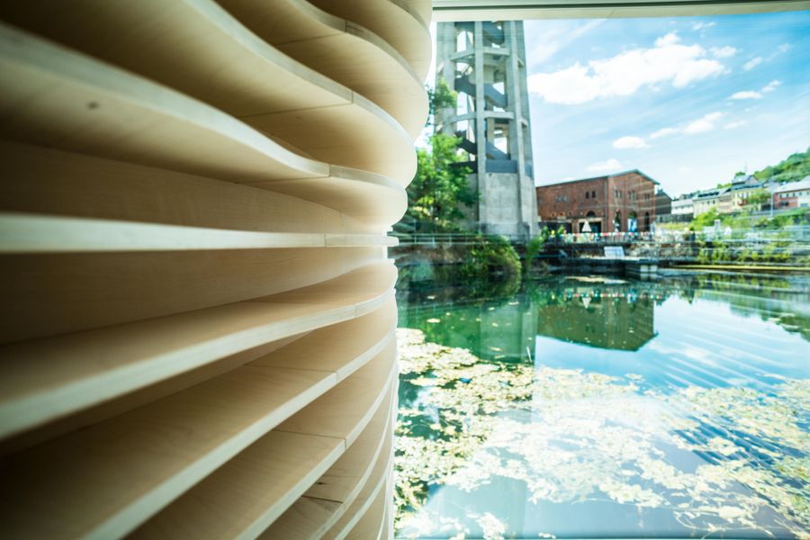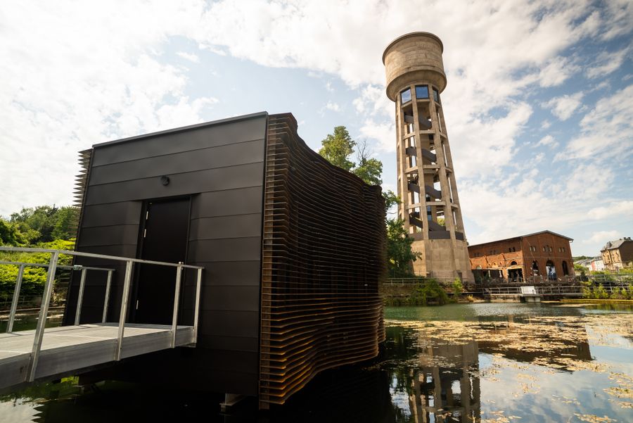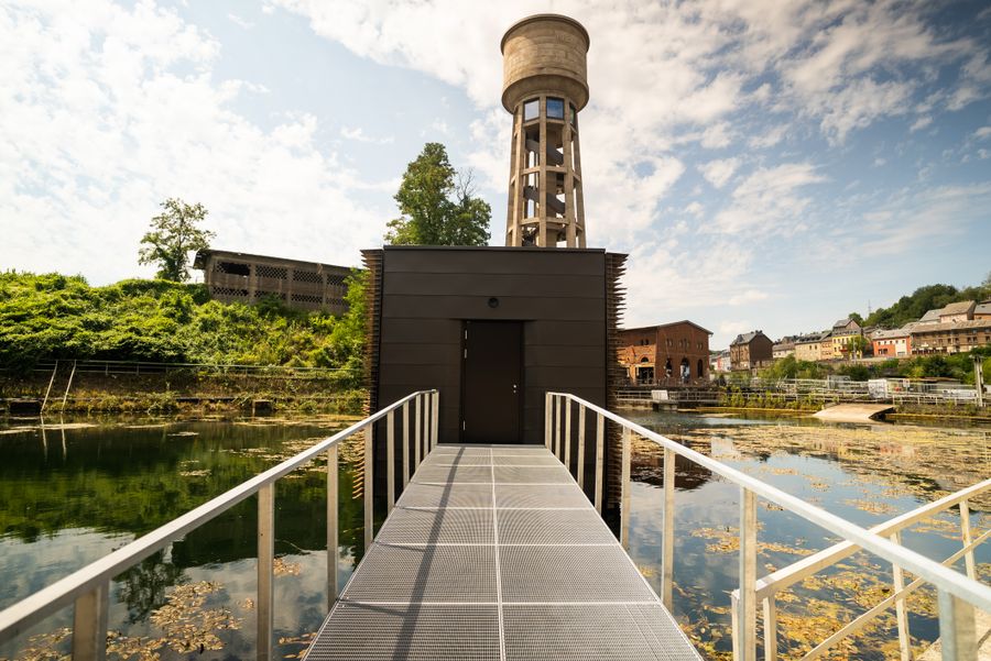 A very unusual "Kabaischen" of the regional hiking trail "Minett Trail" can be found in Dudelange, one of the end (or starting) points of the hike through the Minett region. This hiker's hut, an elaborate steel and wood construction, is situated directly at the water surface. The "Kabaischen" is the unique result of a close collaboration between the artist Franck Miltgen, engineers and architects of M3 Architecture.